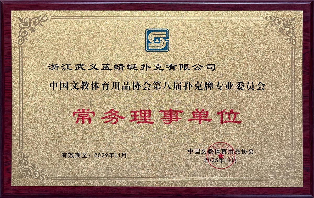 浙江武义蓝蜻蜓扑克有限公司位于风景秀丽的浙江中部温泉之城:武义县;公司专业生产中、高档娱乐扑克、礼品扑克、广告扑克及外贸扑克,经过数年的艰苦创业,稳定年生产扑克1亿副的能力。